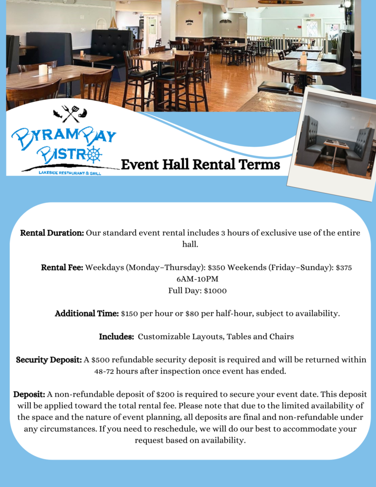 Byram Bay Bistro welcomes DJs and live music to enhance our guests’ experience. However, all music and entertainment must comply with local noise regulations set by the Borough of Hopatcong, NJ.